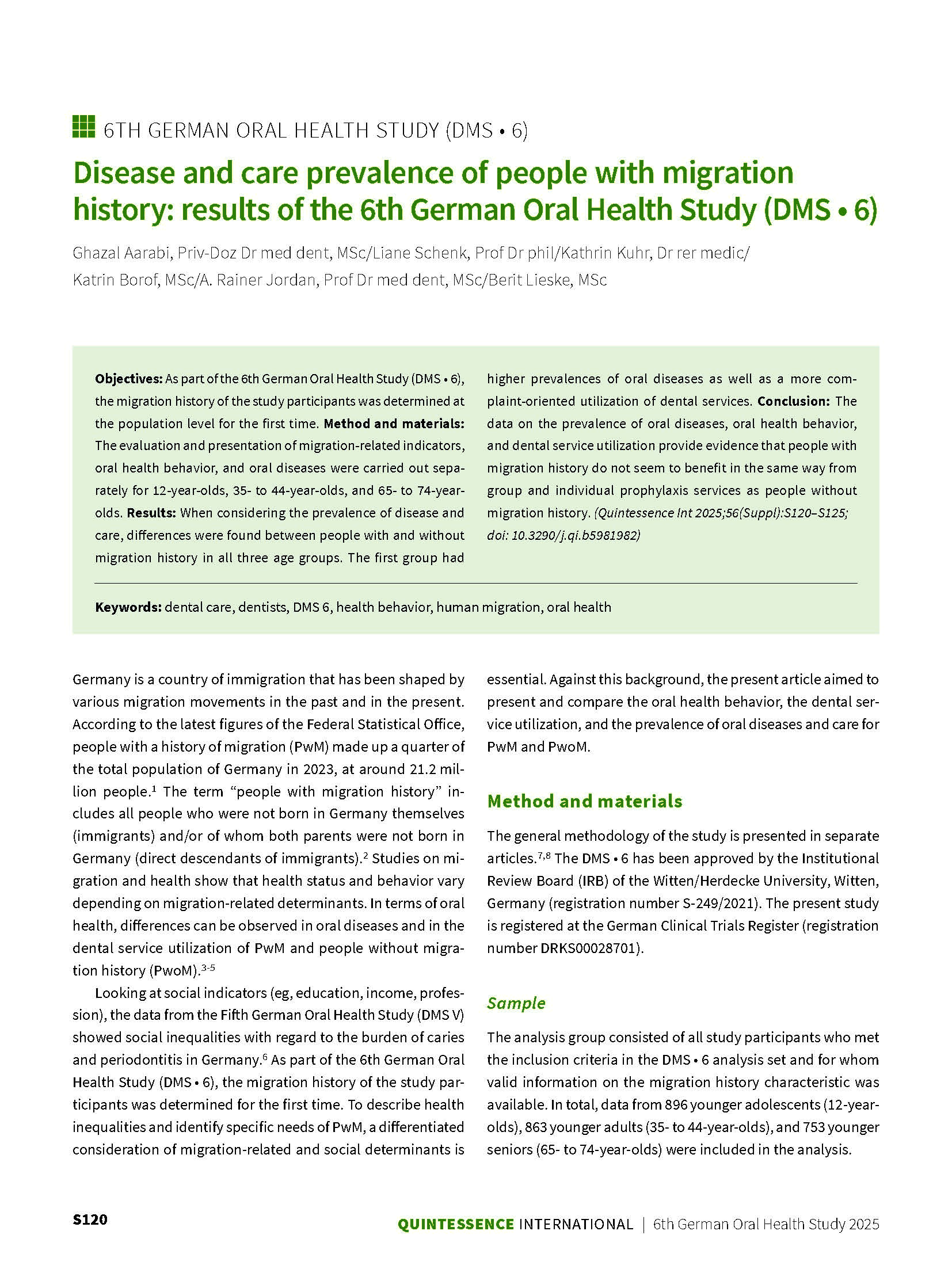 - Überblick über die wichtigsten Ergebnisse der 6. Deutschen Mundgesundheitsstudie (DMS • 6)